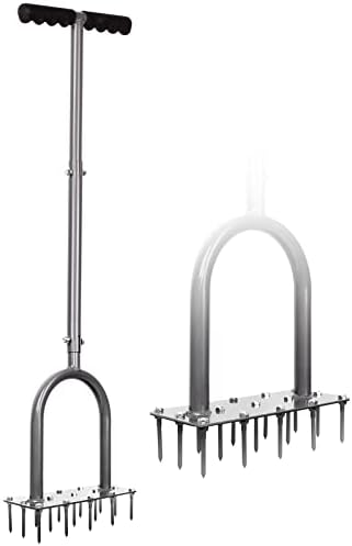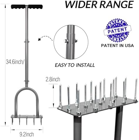 DURABLE & LONG-LASTING MATERIAL:Walensee lawn aerator tool was built to last with durable iron construction with the powder-coated which is heavy-duty and rust-resistant. Our 34.6 inches yard plug core aerator lets you tend to your lawn without back strain. Cushion-designed T-handle and foot bar leverage make poking work easy and energy-saving.The aerator lawn tool breathes new life into any soil type including clay, sand, or loam.