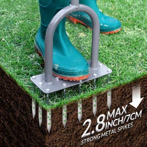 EASY TO INSTALL:You will get a T-handle pole, a pole, a foot pedal, two bolts, two nuts, and two wrenches. Follow the instruction, the aerator shoes grass tool is easy to install, just need a few minutes! It also is easier to carry around after disassembly. With our yard aeration tools, say goodbye to the hard, dry, and yellow yard! TIPS: If your soil is hard and dry, please water your lawn first so that the yard aerator tool can work best.