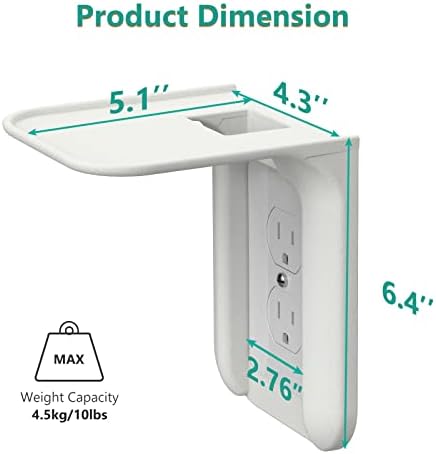 【Space Saving】This space-saving outlet shelf installs directly over standard vertical outlets. Simply replace outlet covers in bathroom, kitchen, dorm, bedroom, garage or any wall/room to free up floor and countertop space