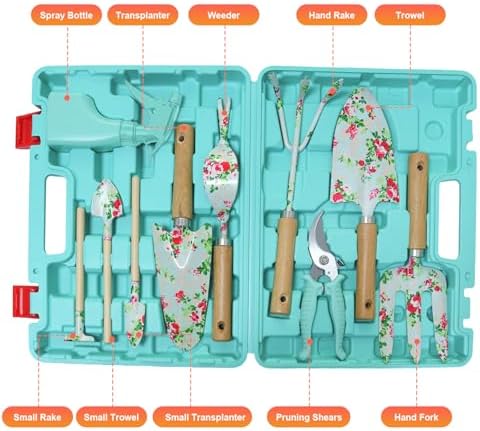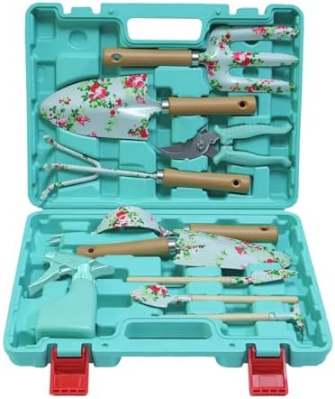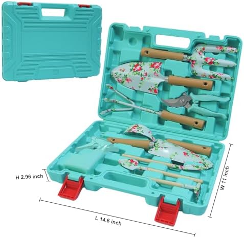 Beautiful Gardening Kit: Elegant light green design with floral details. Comes with a gardening tool box for organized storage.