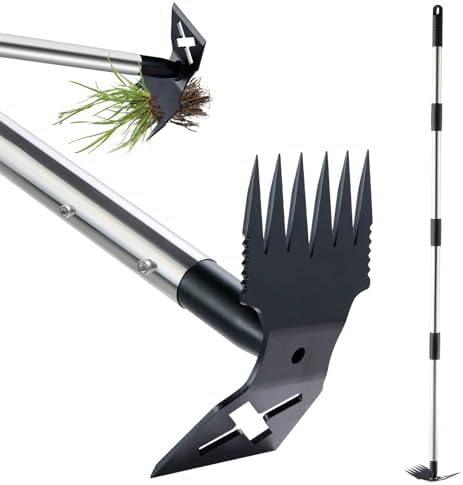 Weed Puller Tool with Long Handle, 60″ Manual Weeder Remover Tool, 2 in 1 Hand Weed Rake and Garden Hoe for Gardening