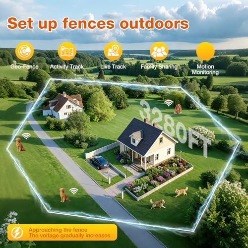 CUSTOM VIRTUAL FENCE, NO BASE STATION NEEDED: Create circular or custom-shaped wireless fences directly in the app without wires or extra equipment. Great for home yards, travel, camping, and outdoor use.