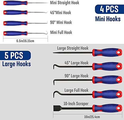 Multipurpose:The pick and hook tools set can meet your different demand when you need to scrape, hook, or pick.Perfect for car repair and other machinery maintenance.