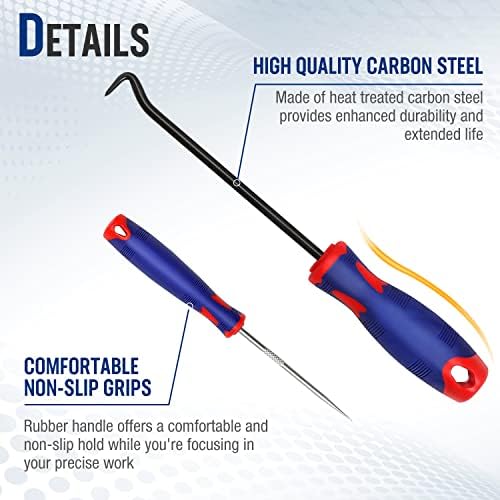 Unique Design:Designed with sharp tip, ideal for removing hoses, moldings, clips, clamps, seals, O-rings, cotter pins, gaskets and more too small to pick up with your fingers. Each hook and pick has an extended length that allows you a deeper reach into tight spaces.