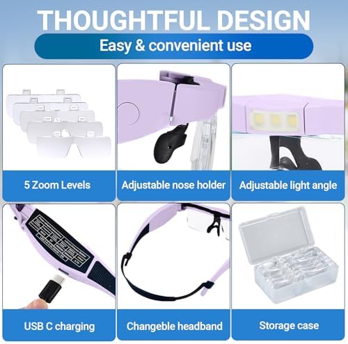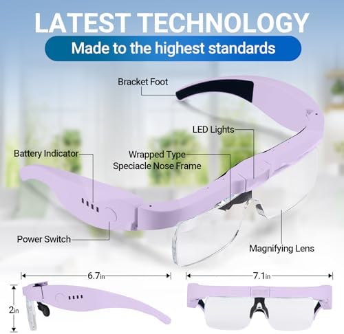 This YOCTOSUN Magnifying glasses with 3 led lights, 5 detachable lenses, wholly rubber wrapped nose bridge and newly designed spectacle frame is much more comfortable for seniors, hobbyists and professionals to wear.