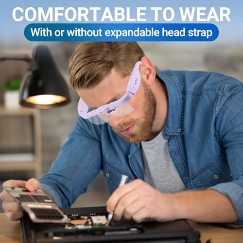 No Eyestrain – Unlike regular reading glasses or magnifiers, YOCTOSUN Magnifier is distortion-free and very easy to use for extended periods of time.Distortion-Free – Optical Grade 5H Acrylic Resin Lenses Provided Clear View of Objects.Lightweight – Newly-designed eyeglass frame and wholly rubber wrapped nose bridge can greatly lighten the load on the bridge of your nose.Adjustable- Adjustable LED Light Angle ,adjustable nose pad and adjustable frame.Power indicator light design helps you to charge the battery timely.